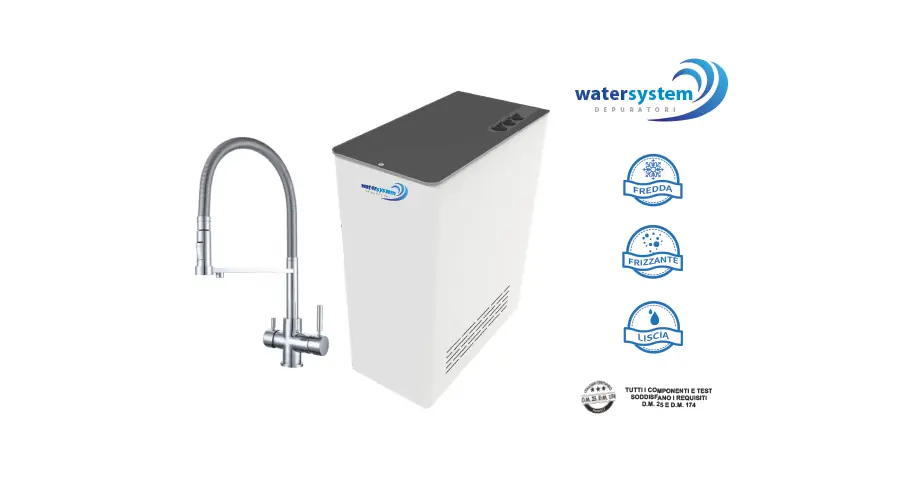 Il frigogasatore sottozoccolo Kelly , basato su tecnologia ad osmosi inversa a flusso diretto, è progettato per erogare acqua purificata e refrigerata, ideale per ambienti professionali che richiedono efficienza e discrezione. Compatto e performante, è conforme alle normative di sicurezza e qualità del Ministero della Salute (D.M. 25/2012 e D.M. 174/2004).